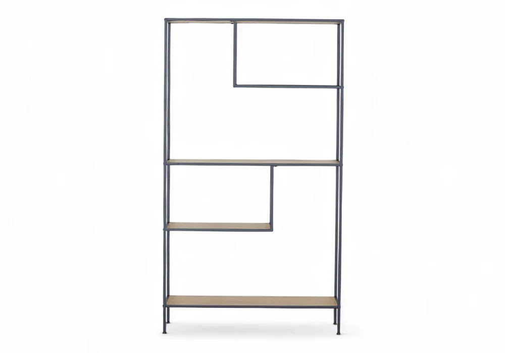 L’Étagère Design Caroon impose son style avec une silhouette graphique et affirmée. Sa structure en métal noir, fine et robuste, dessine une ligne verticale élégante, tandis que ses étagères en MDF coloris chêne OAK apportent une chaleur boisée et une texture naturelle à l’ensemble. Ce contraste de matériaux crée un équilibre visuel fort, idéal pour les intérieurs contemporains.