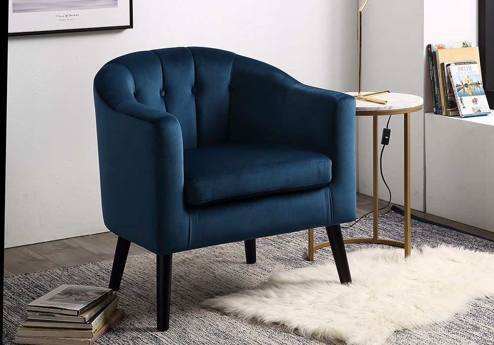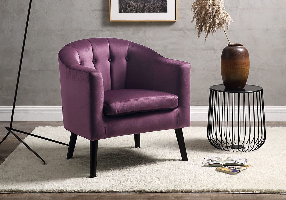 Structure en panneau de particules, assise mousse en polyuréthane recouverte de tissu microfibre velvet coloris gris, bleu, turquoise, noir ou purple, 70x64x75cm.