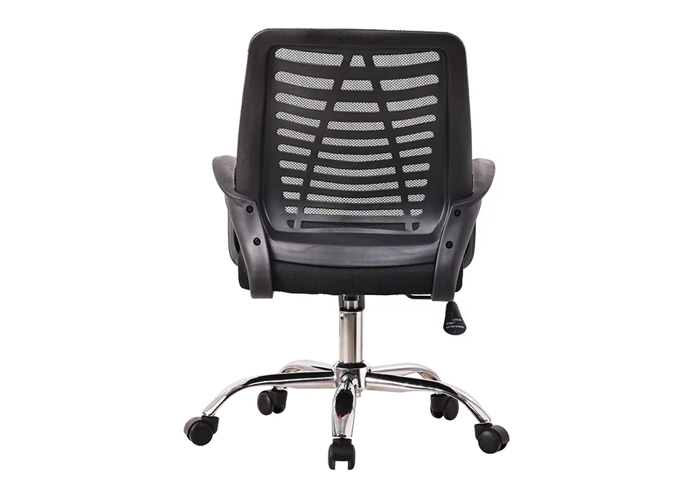 Le piètement en métal chromé confère au fauteuil un aspect élégant et moderne. Les roulettes en nylon assurent une mobilité fluide et silencieuse sur diverses surfaces.