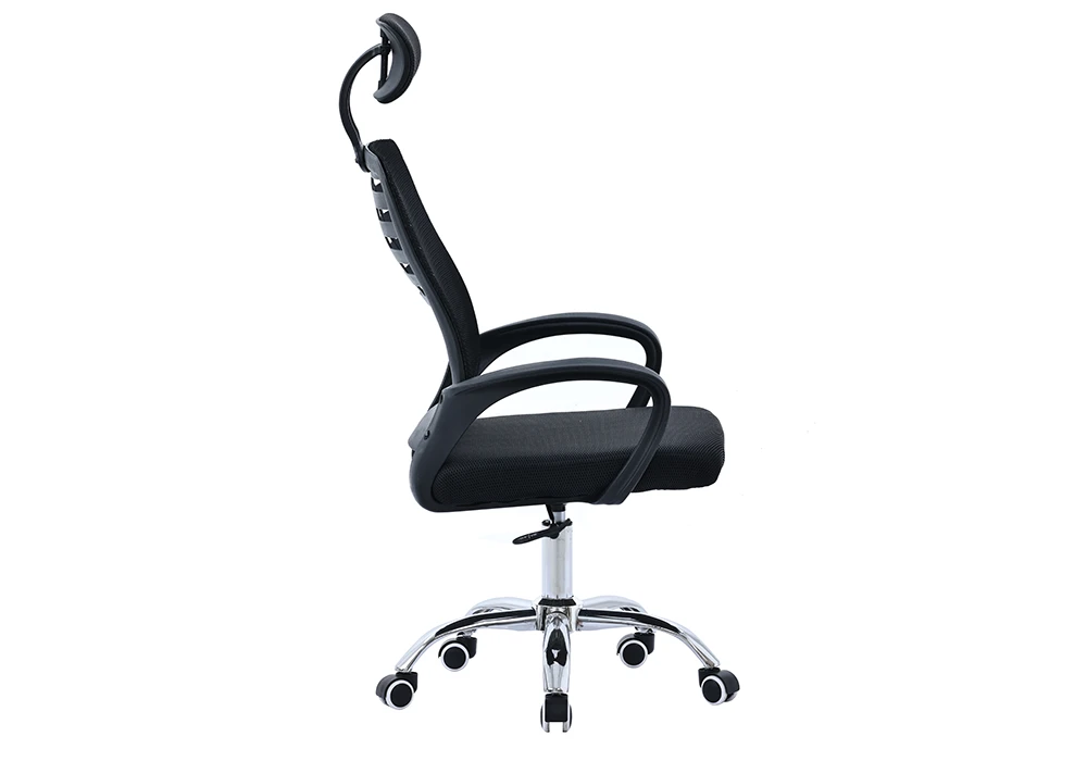 Le piètement en métal chromé confère au fauteuil un aspect élégant et moderne. Les roulettes en nylon assurent une mobilité fluide et silencieuse sur diverses surfaces.