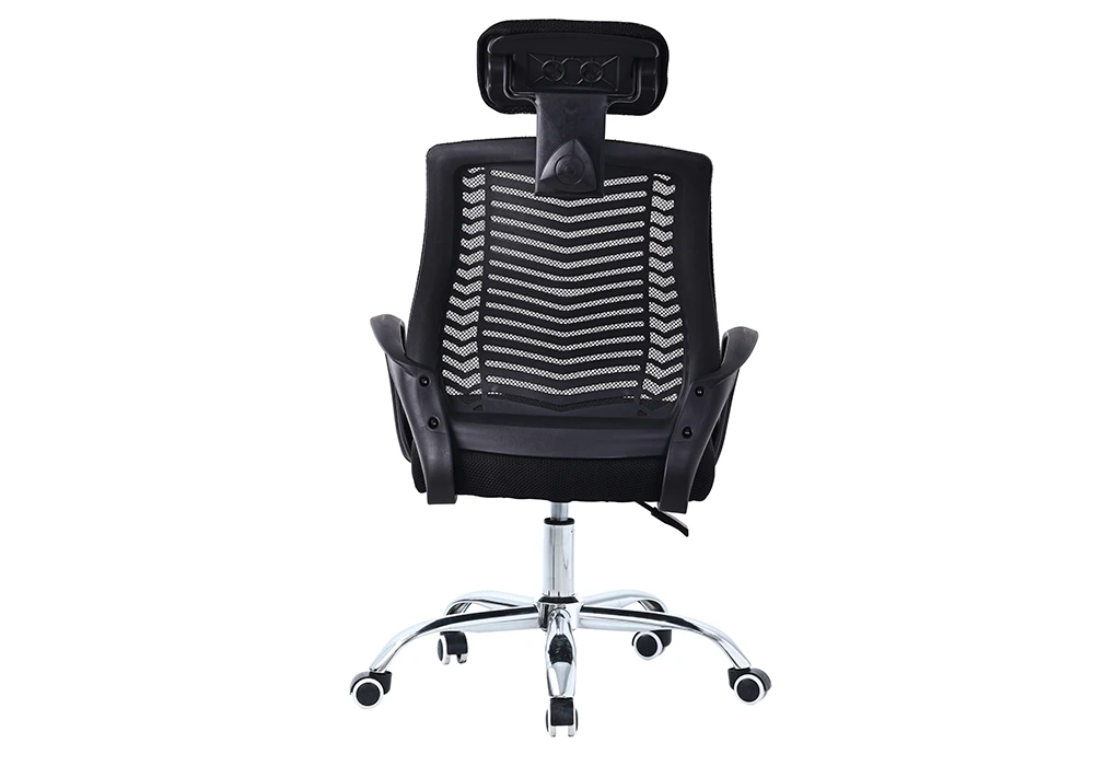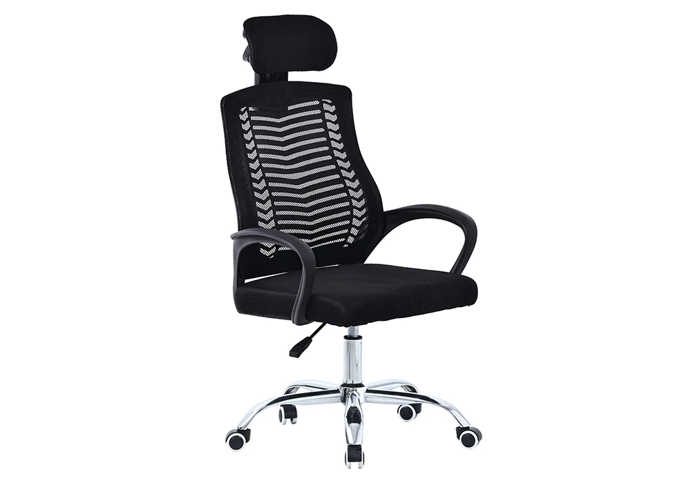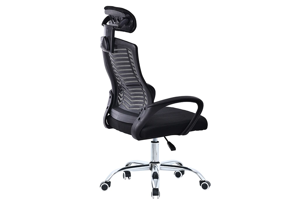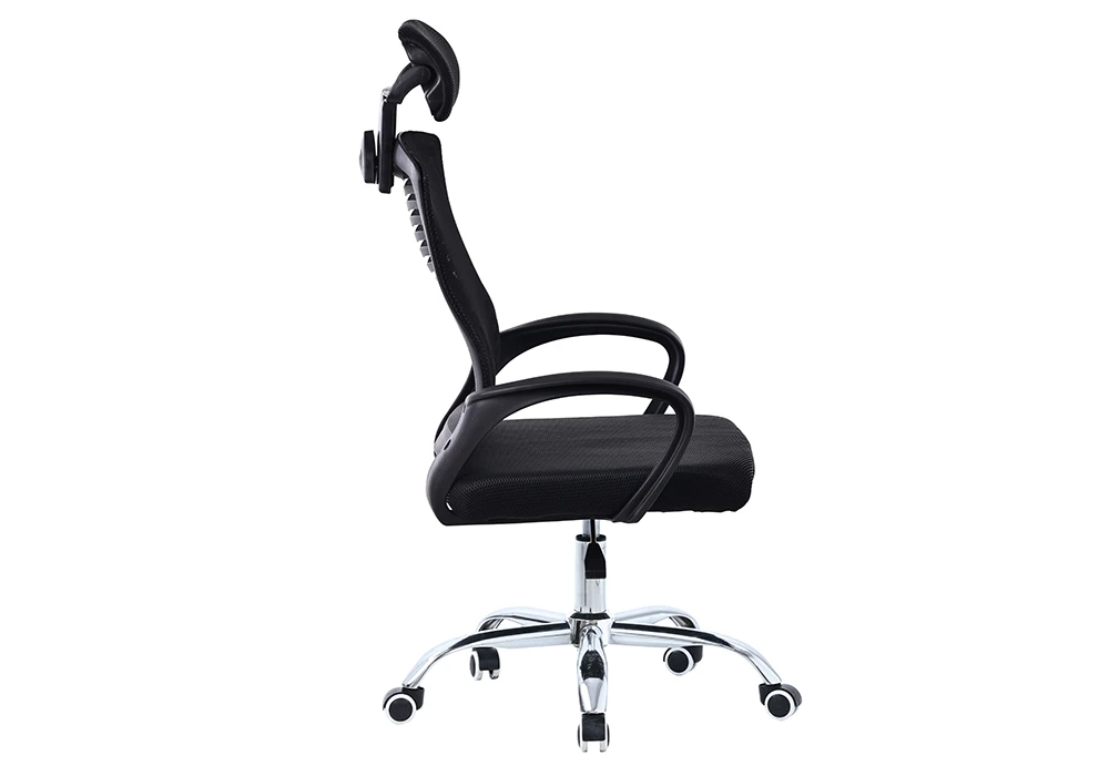 Le piètement en métal chromé confère au fauteuil un aspect élégant et moderne. Les roulettes en nylon assurent une mobilité fluide et silencieuse sur diverses surfaces.