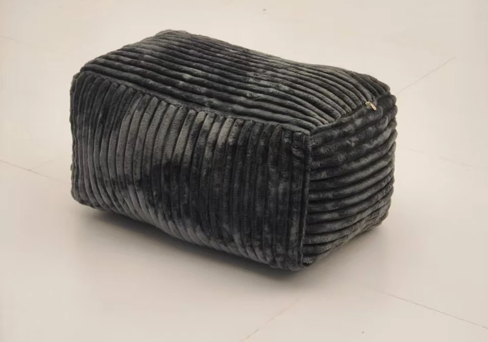 Structure en mousse haute densité compressée, assise et dossier en mousse polyuréthane à mémoire de forme, revêtement en tissu côtelé (effet velours) coloris noir ou gris, livré compressé sous vide avec décompression automatique à l’ouverture, pouf assorti inclus.