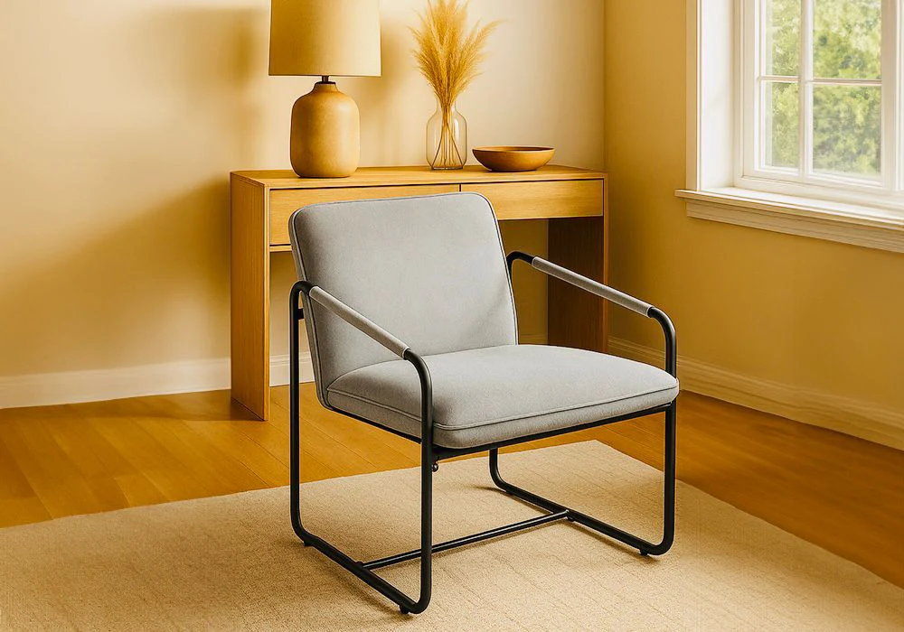 Ses pieds en métal noir se marieront tout particulièrement avec un intérieur moderne et conféreront à cette assise robustesse et longévité.
