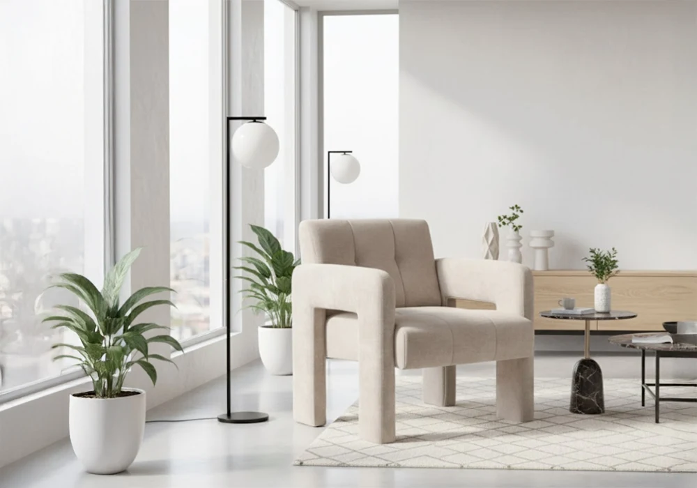 Découvrez le fauteuil Palms, un fauteuil à l’allure moderne et chaleureuse pensé pour apporter confort et élégance à votre intérieur. Grâce à son design épuré et ses teintes naturelles, il s’intègre facilement dans un salon, une chambre ou un espace détente.