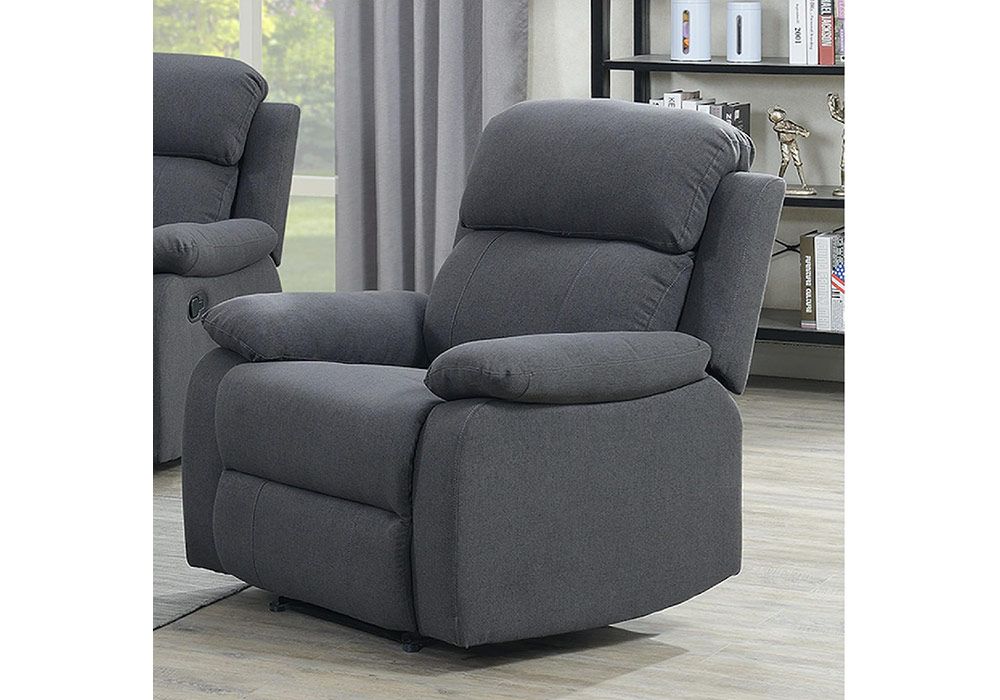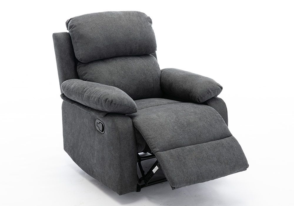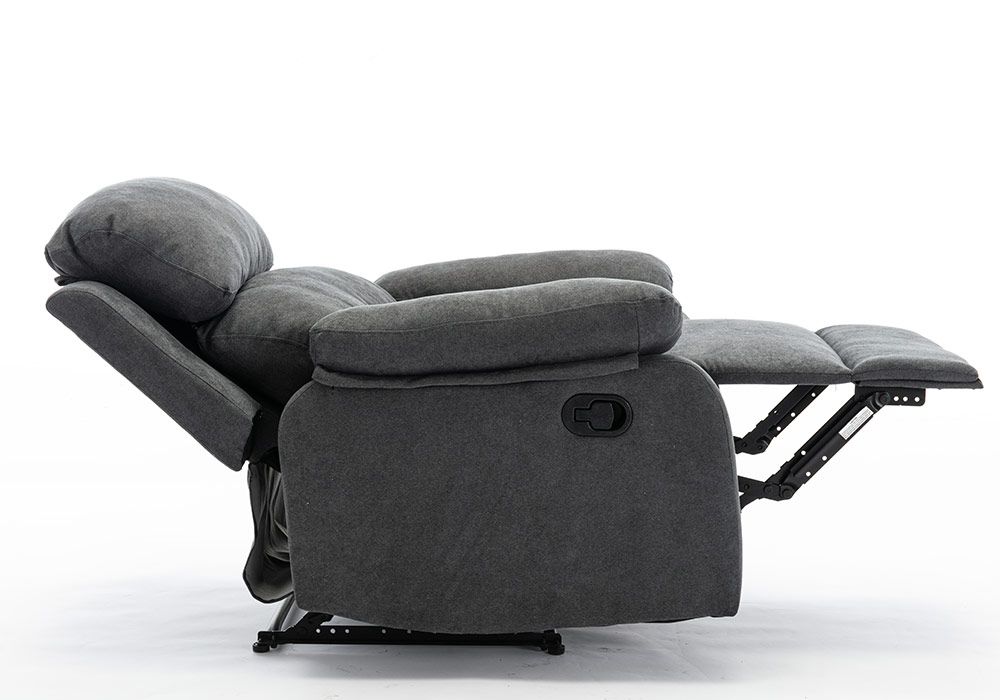 Structure en panneau de particules, assise mousse en polyuréthane recouverte de tissus coloris gris, 85x92x102cm.