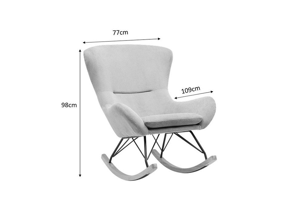Le superbe fauteuil à bascule ROCK avec son tissu microfibre côtelé habillera votre salon avec élégance ! Il créera une atmosphère douce et apaisante chez vous grâce à ses formes moelleuses et son tissu, qui lui assurent un confort inégalé. Ce rocking-chair est doté d’une structure en métal et d’un piétement en bois, il trouvera forcément sa place dans votre intérieur, vous pourrez profiter de son confort et de ses balancements.