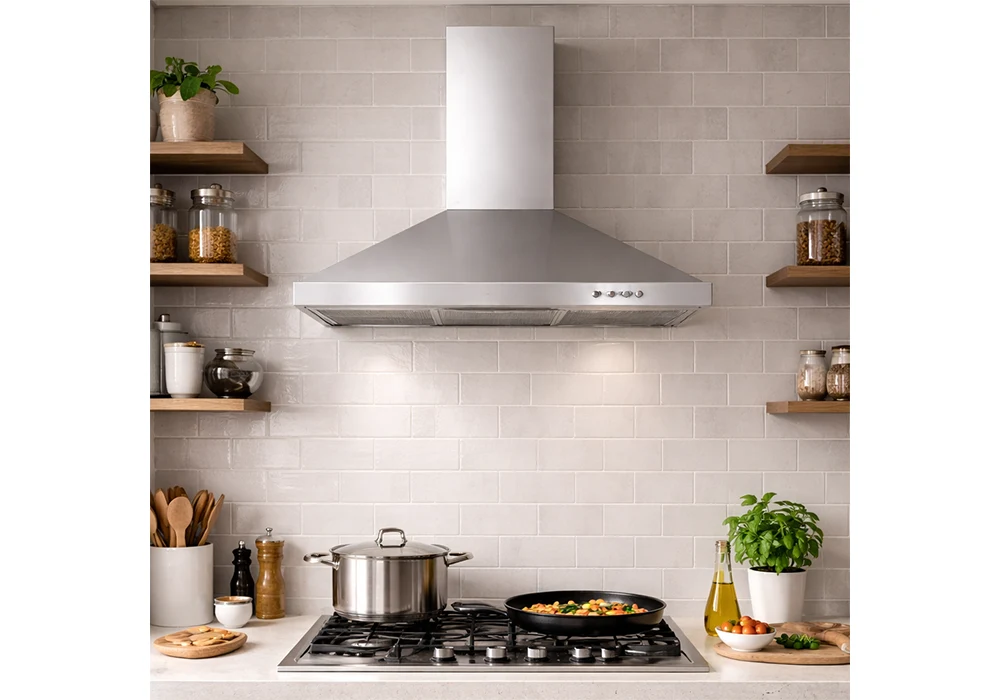 Facile à utiliser au quotidien, cette hotte permet une aspiration silencieuse et efficace, ainsi qu’une installation simple, que ce soit en mode évacuation vers l’extérieur ou en recyclage avec filtres à charbon (selon configuration). L’ensemble rend l’air de votre cuisine plus propre, frais et agréable à vivre.