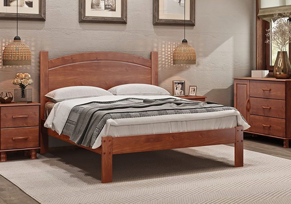 Apportez une pointe de douceur dans votre chambre et faites entrer la noblesse du bois dans votre chambre à coucher avec ce lit en pin massif Bronze. Sa teinte merisier lui apporte un côté authentique à la qualité incomparable. Robuste et massif, ce lit illuminera votre intérieur par ses lignes simples, mais très élégantes.