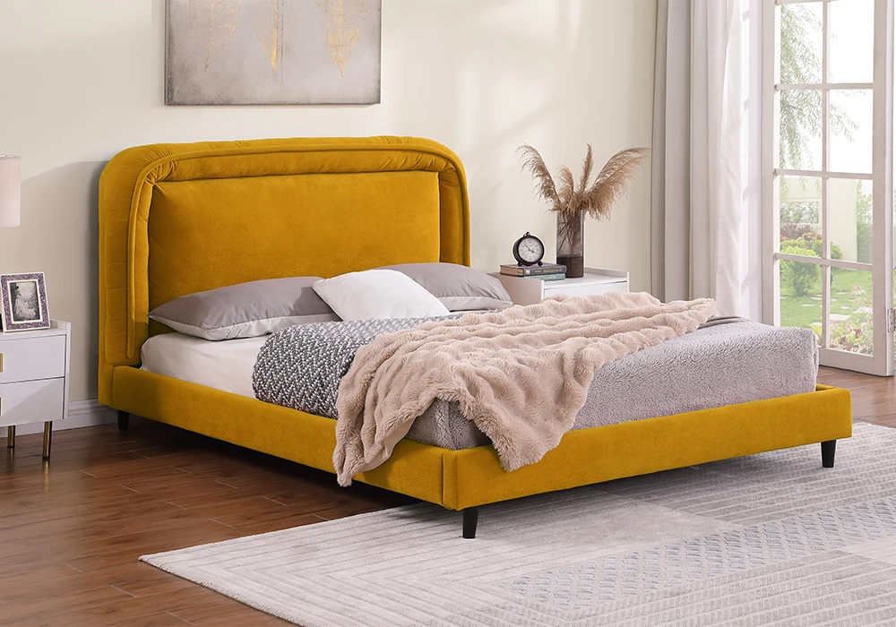 Le lit Rubia est bien plus qu’un simple mobilier de chambre : c’est une pièce maîtresse à la fois élégante et moderne. Conçu avec une structure robuste en panneau de particules, il allie durabilité et raffinement. Sa surface est délicatement recouverte d’un tissu microfibre épais, offrant une douceur et un confort incomparables. Disponible en coloris moutarde chaleureux ou en gris apaisant, ce lit s’intègre harmonieusement à divers styles de décoration intérieure.