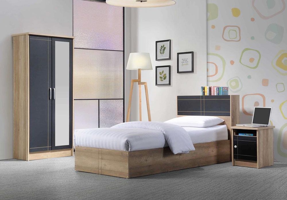 Ce lit de haute qualité de la collection Alexandra deviendra la star de votre chambre à coucher, ses lignes épurées, sublimées par une teinte summer oak/noir, en font un lit de avec un aspect et un design élégants mais discrets, ce lit donnera à votre chambre une touche de charme sophistiquée.