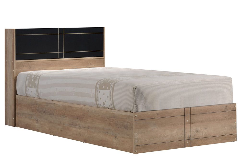 Structure en panneau de particules recouvert de papier coloris summer oak / noir, lit vendu AVEC SOMMIER, SANS MATELAS