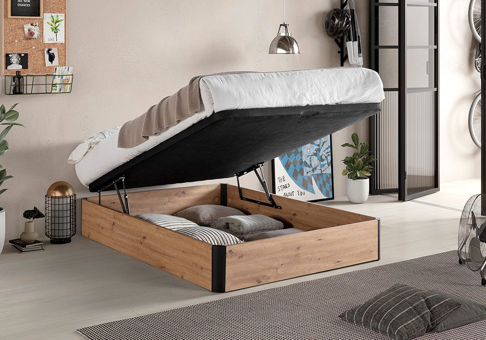 Son plateau supérieur est en une partie sur les deux déclinaisons. Son système d’ouverture se fait à l’aide de deux vérins placés dans la structure intérieur du coffre. Son fond à une épaisseur de 6 mm en MDF et est renforcé par une barre en bois.. Vous pouvez y ranger draps, couettes, coussins et vêtements volumineux. Un gain de temps et d’espace ! Fini les oreillers empilés, laissez place à une chambre rangée en toute circonstance !