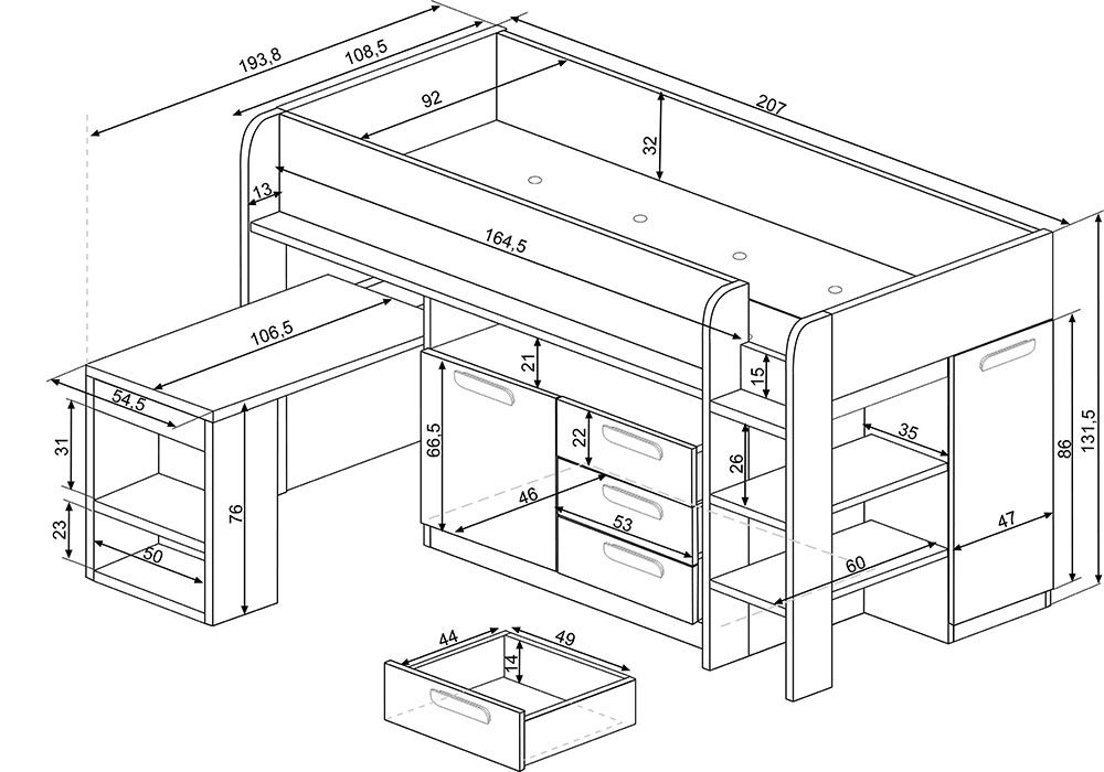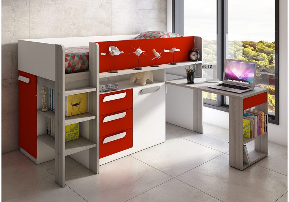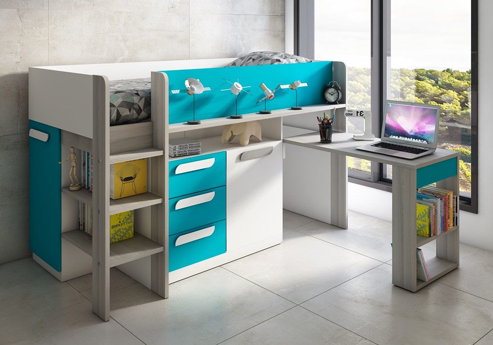 • Lit mezzanine 200×90 avec base en bois comme sommier inclus.