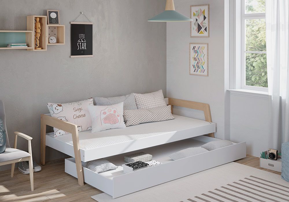 Avec sa partie rangement grâce à un long tiroir positionné sous le lit, le lit Carrie saura trouver sa place dans la chambre de votre enfant. Sa structure offrira toute la robustesse souhaité pour un lit enfant !