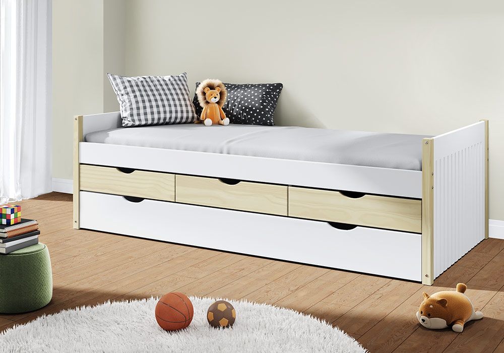Livré avec 1 tiroir lit et 3 tiroir de rangement.