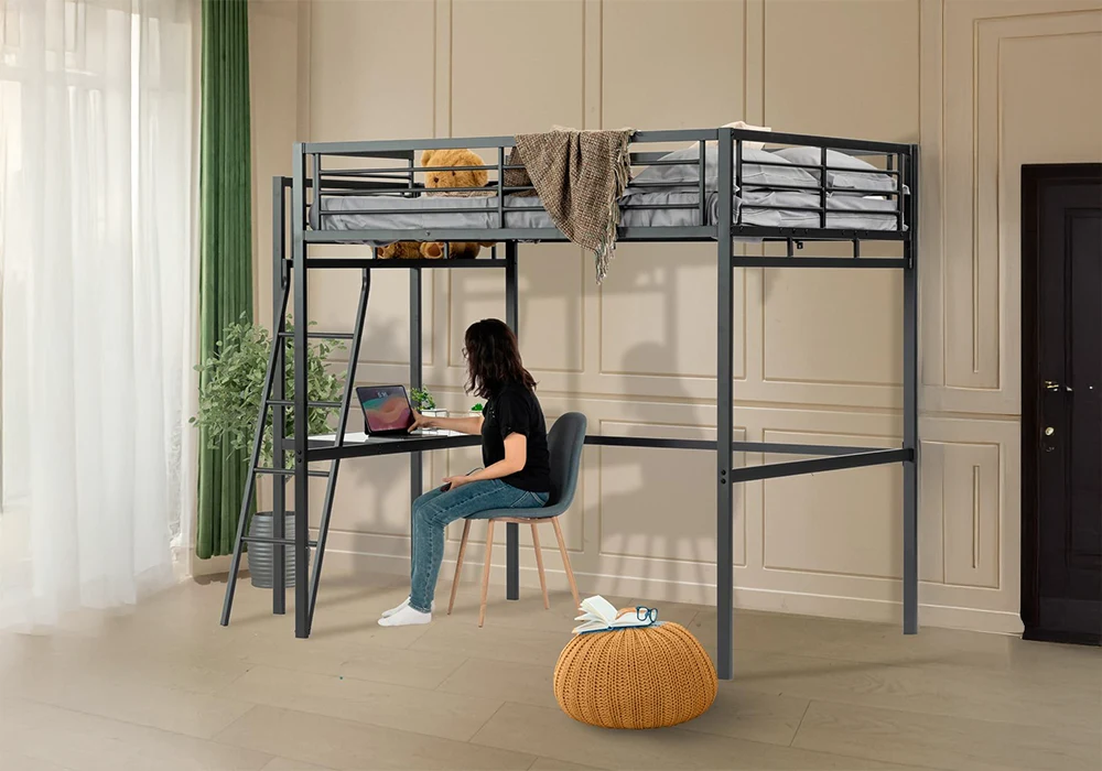 Conçu pour optimiser l’espace sans sacrifier le confort, ce modèle intègre un bureau fonctionnel directement sous le couchage. Idéal pour les chambres d’adolescents, les studios ou les espaces polyvalents, il permet de créer un coin travail ou lecture parfaitement structuré.