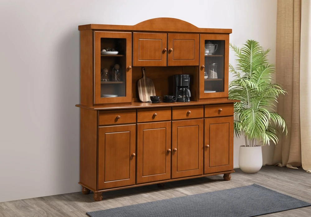 Esthétique à souhait avec sa teinte merisier, ce buffet vaisselier donnera une touche de caractère à votre intérieur tout en soulignant une ambiance chaleureuse. En panneau de particules et hévéa massif, il se caractérise par une haute résistance et une excellente tenue au fil des années. Ce modèle comporte 8 portes et 4 tiroirs pouvant aisément accueillir vos verres et votre vaisselle. Fonctionnel et robuste, ce meuble saura nettement vous convaincre.