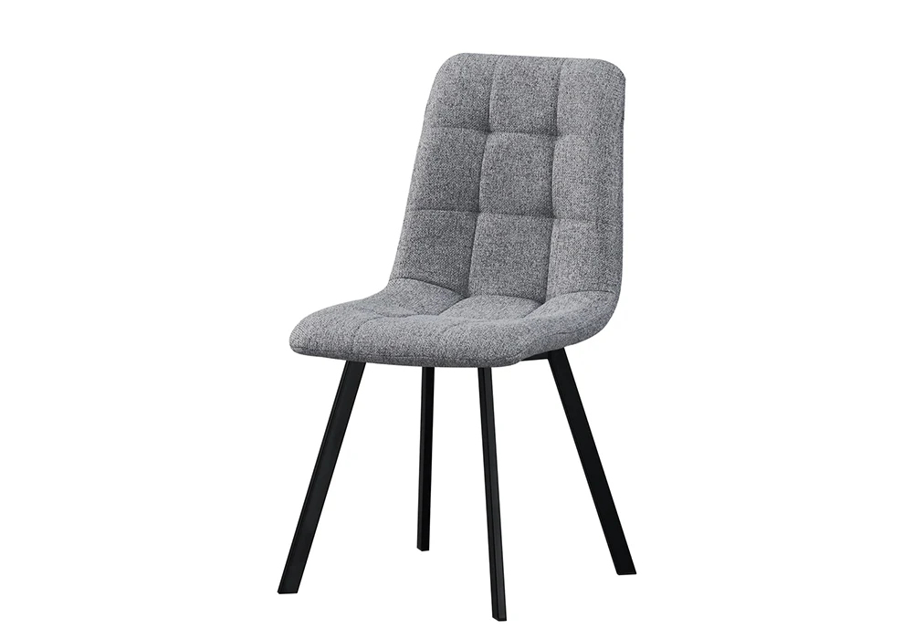 Chaque chaise est conçue avec une structure en métal noir, garantissant stabilité et solidité au quotidien. L’assise en tissu microfibre coloris gris offre un confort agréable tout en étant douce au toucher et facile d’entretien.
