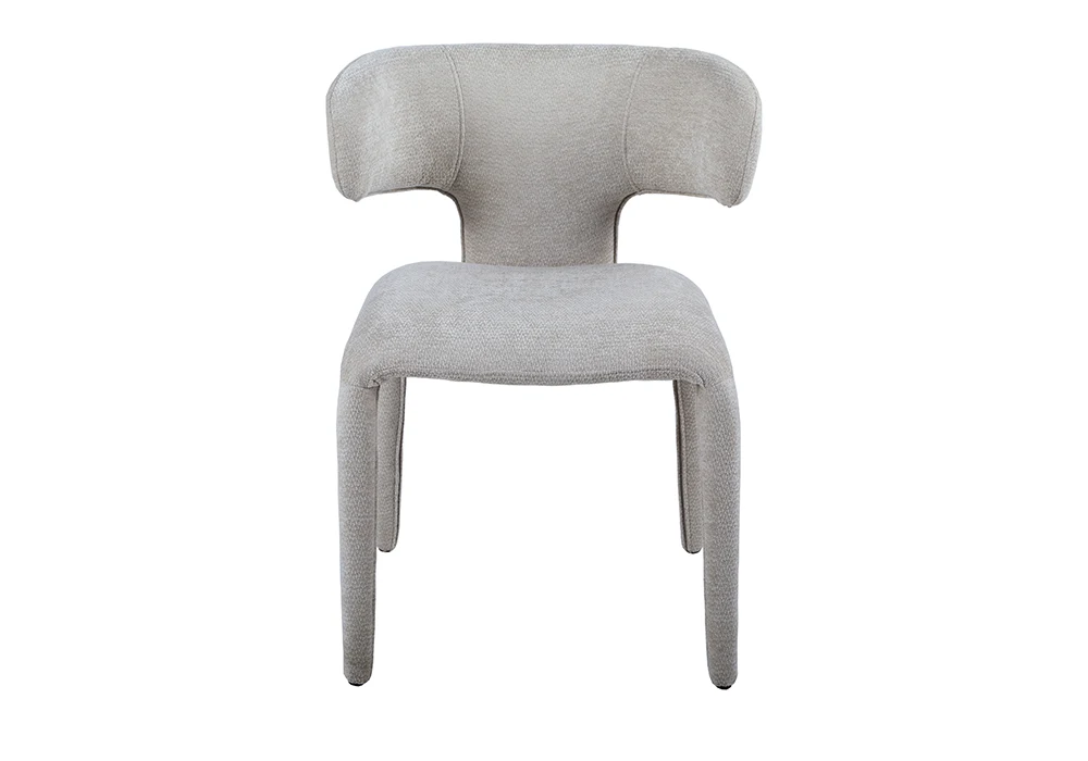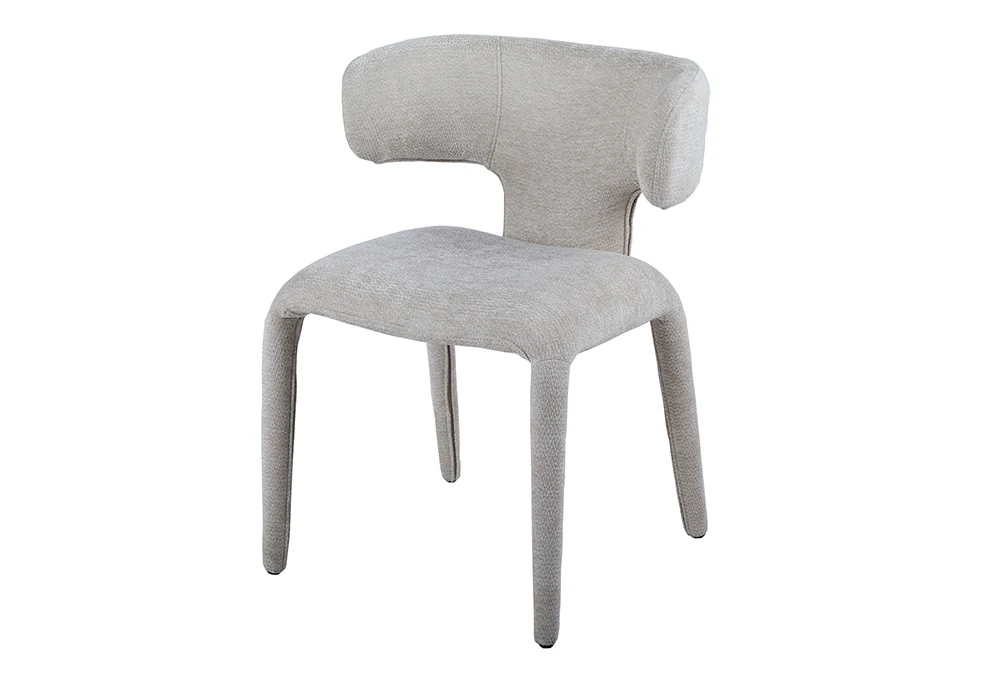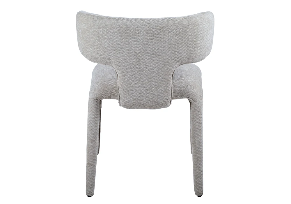 Le lot de 6 chaises HÉRITAGE beige se distingue par son design moderne monobloc et son revêtement en tissu bouclé texturé beige, très tendance dans les intérieurs contemporains.
