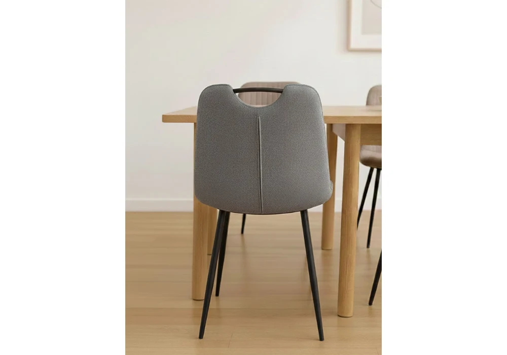 La structure et le piétement sont réalisés en métal noir, garantissant une excellente stabilité et une longue durabilité. Ses pieds en métal tendance apportent une touche moderne et élégante, tout en assurant une base solide. L’assise est quant à elle revêtue d’un tissu microfibre coloris gris, doux, résistant et facile à entretenir, pour un rendu lumineux et chaleureux.