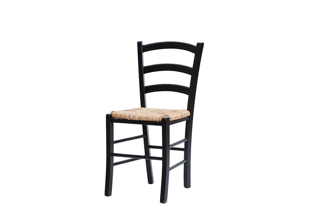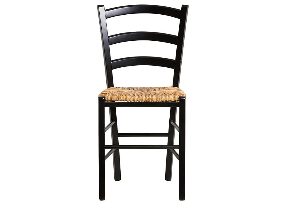 Structure en BOIS HÊTRE MASSIF de couleur noir, assise en paille, 48x39x85cm