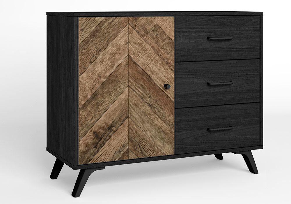 Réchauffez votre déco d’intérieur avec les meubles de la collection Chevrons. Le mélange de couleur noir et chêne créé un look industriel et design dans votre salon. Installé dans votre séjour, ils génèrent une ambiance chaude et conviviale.