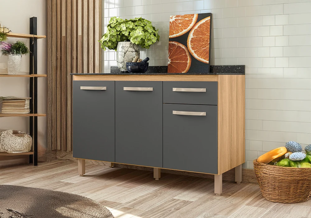 Meuble Bas 3 Portes 1 Tiroir Evora freijo merisier / gris