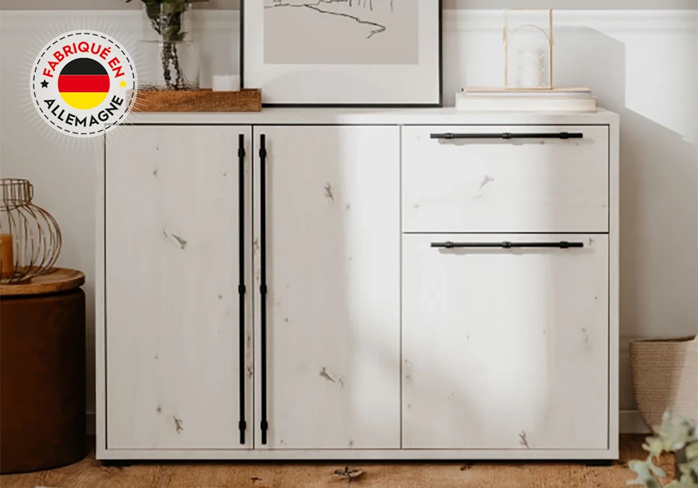 Le meuble de rangement de la collection Almo affiche des lignes parfaites et épurées. Ce buffet est équipé de rangements qui vous permettront de loger tout le nécessaire dédié au salon et au séjour.