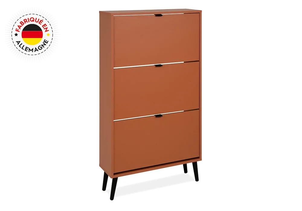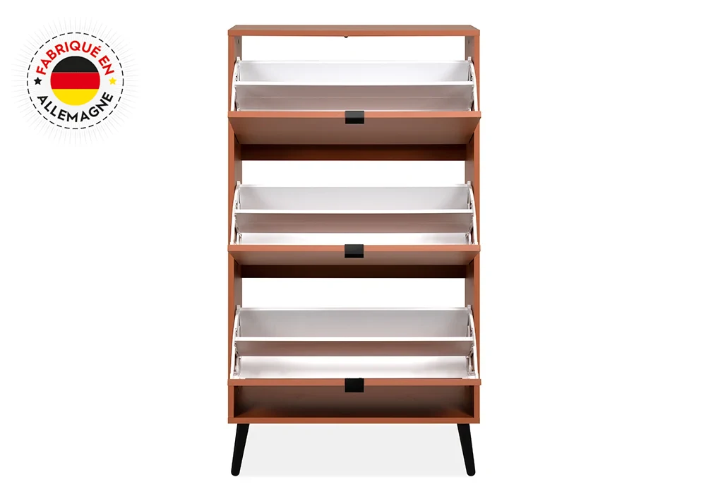 Équipé de 3 abattants, ce meuble offre un rangement optimisé pour vos chaussures, facilitant l’accès et permettant de garder votre espace ordonné. Chaque compartiment est conçu pour accueillir plusieurs paires, combinant praticité et gain de place.
