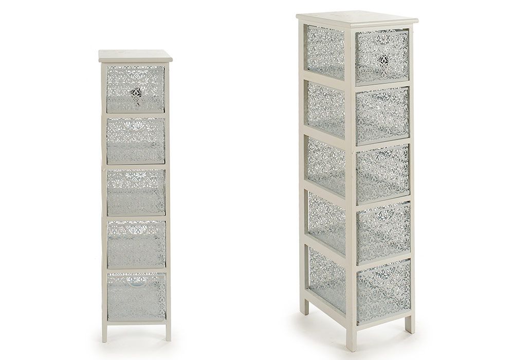 Structure en BOIS MASSIF coloris blanc / gris clair avec tiroir en métal déco, L26x32xH98cm.