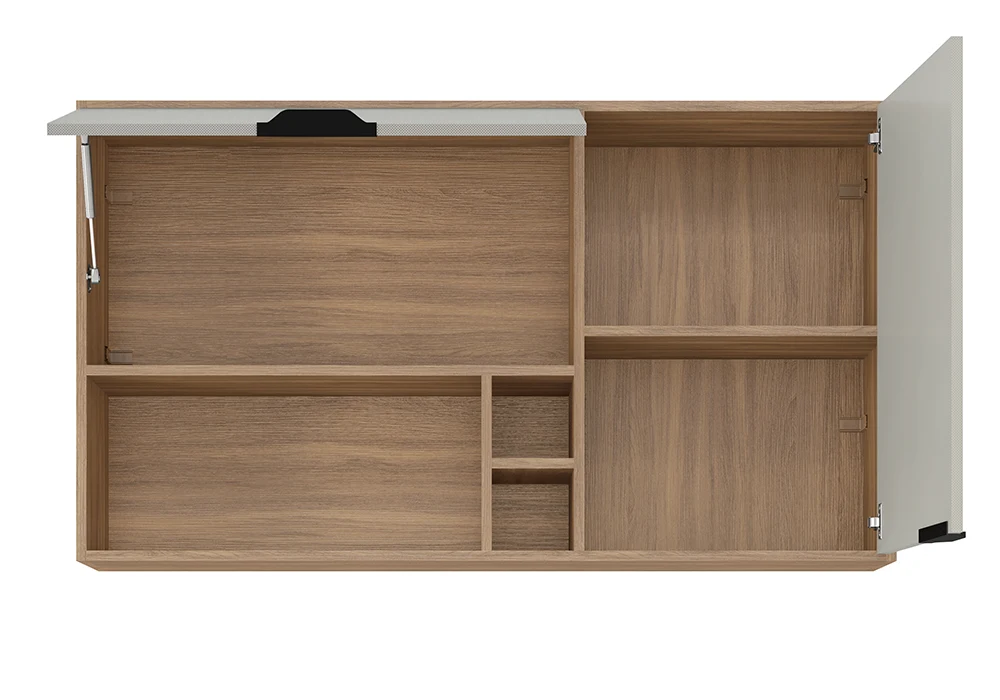 Doté de 2 portes et d’une étagère ouverte, ce meuble haut permet de structurer votre mur tout en offrant un accès facile à vos objets du quotidien. Son design épuré s’intègre parfaitement dans une cuisine moderne, tout en créant une harmonie visuelle avec les autres éléments de la collection Firenze.