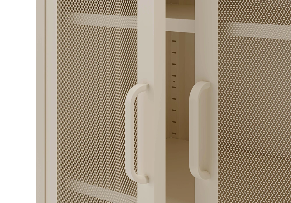 Ses portes élégantes ornées d’empiècements grillagés de forme ovale, complétées par des poignées ton-sur-ton, longues et droites. En somme, un meuble haut qui allie élégance et facilité d’association avec votre décoration intérieure.