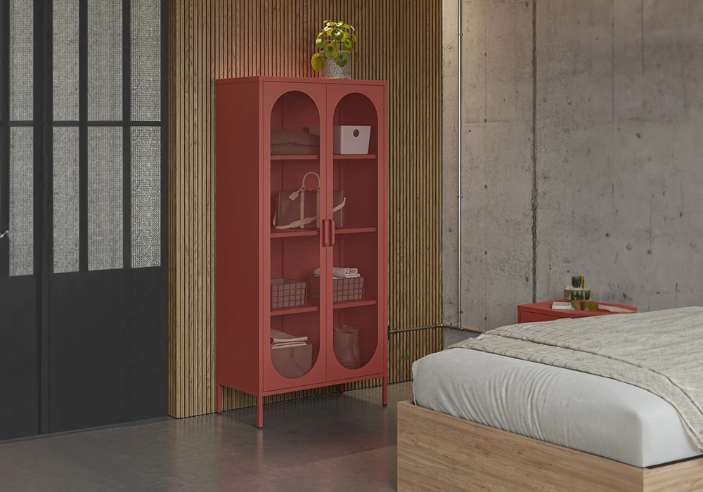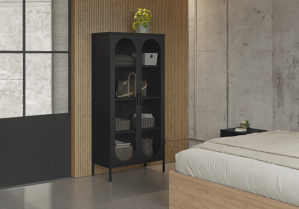 Le meuble haut Diora, entièrement confectionné en métal, arbore une forme rectangulaire classique et repose sur 4 pieds discrets qui lui confèrent stabilité et légèreté. Pratique, il offre un bel espace de rangement sur 4 niveaux, fermé par 2 portes. Vous pourrez y ranger vaisselle, documents ou même de jolis paniers.