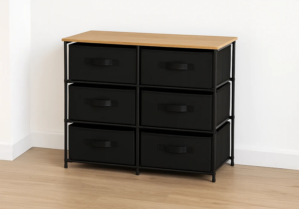 Pensé comme un complément idéal pour les intérieurs modernes, le meuble de rangement 6 tiroirs en tissu Mabel conjugue style contemporain, fonctionnalité et gain de place.