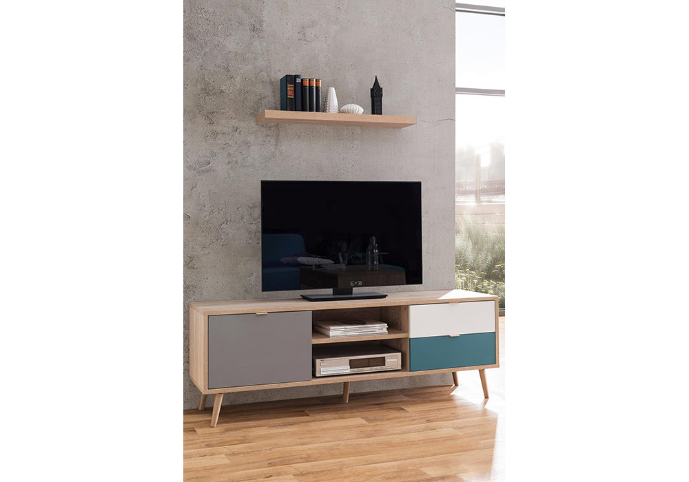 Esthétique que fonctionnel, le meuble TV Cuba est composée de nombreux espaces de rangements. Le meuble de télévision Cuba saura réchauffer votre salon grâce aux associations de couleurs qui le composent. Du bleu pétrole au blanc en passant par la couleur gris, ce mobilier de style scandinave offre un design remarquable.