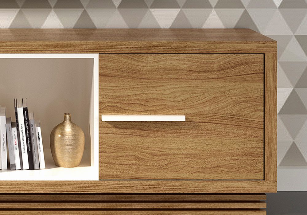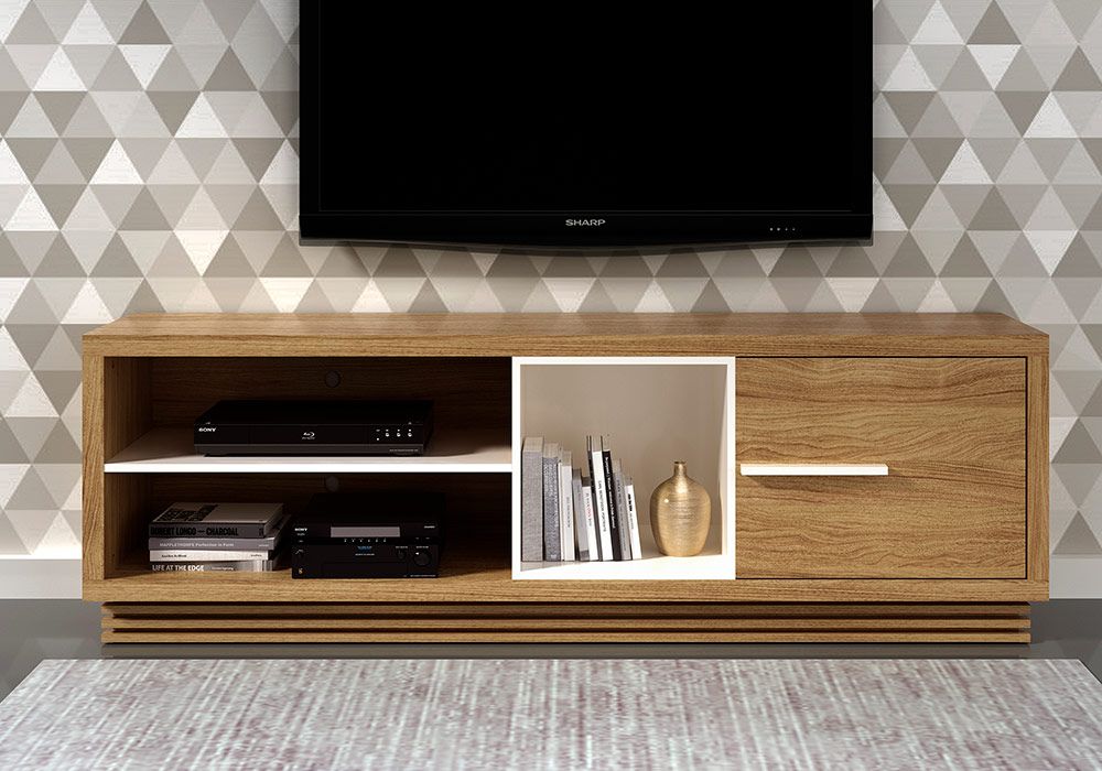 Avec son design pratique, cet élégant meuble TV fait rimer design et élégance ! Ce meuble TV vous permettra de multiplier les espaces de rangement et moduler votre salon en fonction de vos besoins. Simple et efficace ! Ce meuble s’intègrera facilement dans tous les intérieurs. Doté de niches et d’1 porte, ce meuble de télévision accueillera tout votre équipement multimédia.