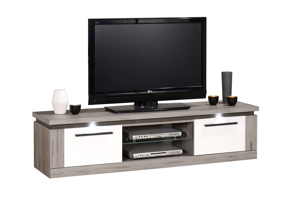 Il propose de multiples espaces de rangement, cachés ou vitrés, ainsi que des supports pratiques pour de belles décorations. Habillé de tons naturels, il séduit pour son côté chaleureux. La couleur bois et blanc s’accorde superbement pour insuffler un style industriel dans votre pièce de vie.