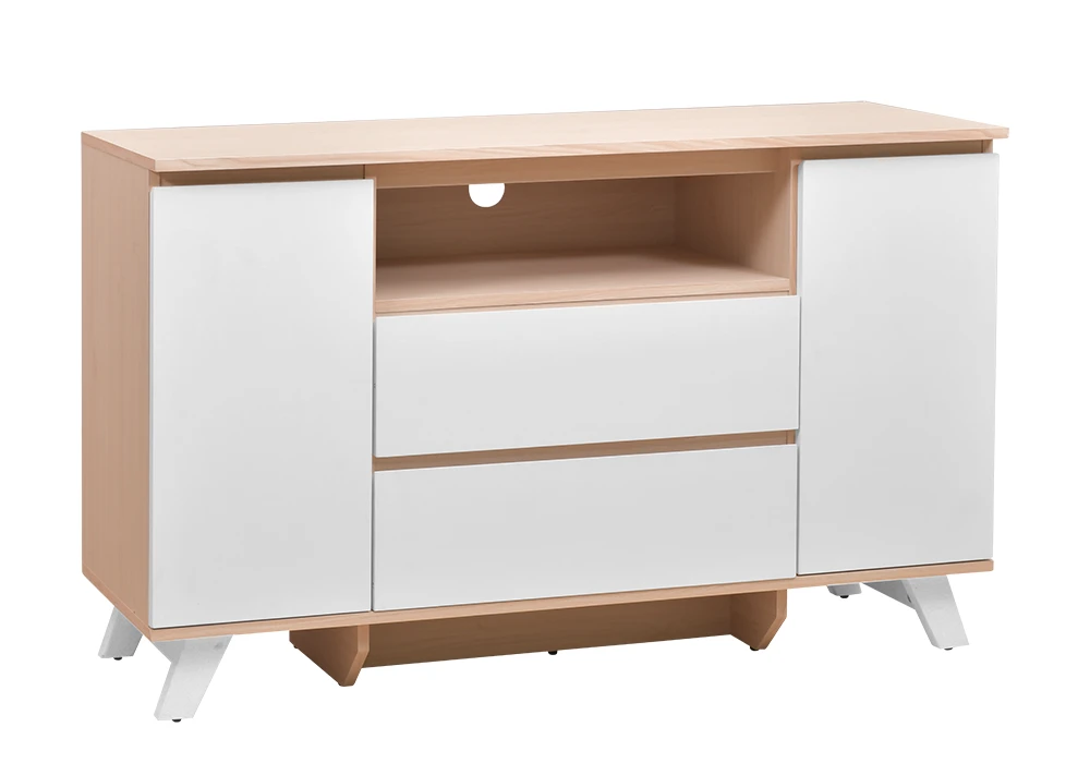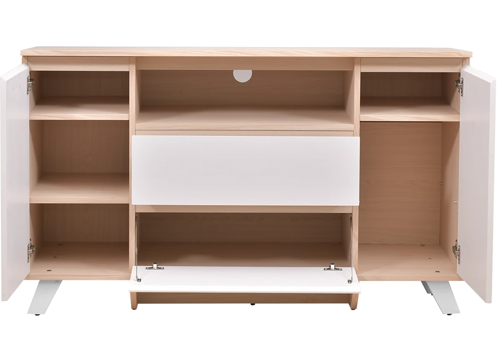 Transformez votre espace de divertissement avec le superbe meuble TV Arsen. Fabriqué avec une structure en panneau de particules de haute qualité, ce meuble arbore une finition élégante combinant un coloris blanc et chêne. Ce contraste raffiné ajoute une touche de modernité et de chaleur à votre intérieur.