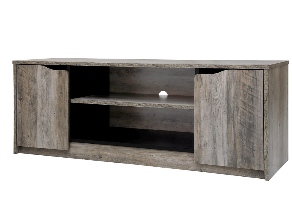 Ce meuble TV 2 portes avec compartiments ouvert offre assez d’espace pour y mettre un téléviseur grande dimension, vos équipements multimédias ainsi que vos objets de décoration.