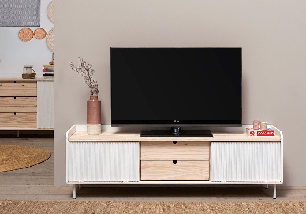 Meuble TV 2 Tiroirs 2 Portes Coulissantes Oregon