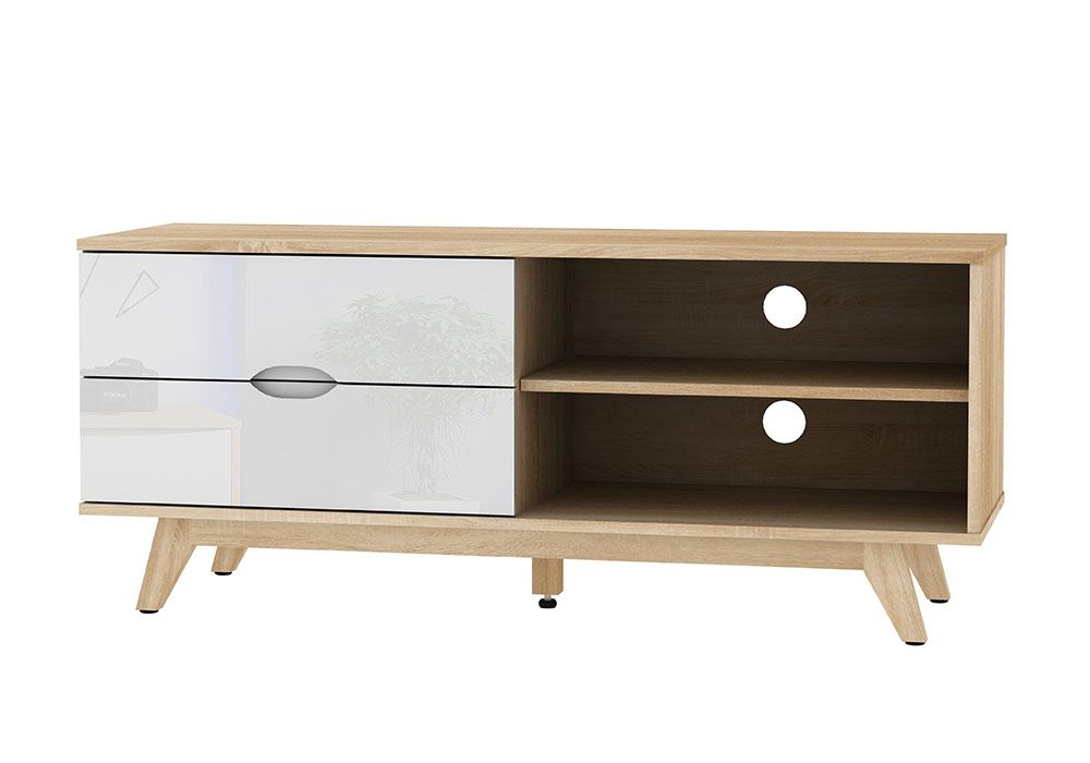 Structure en panneau de particules sur papier couleur sonoma oak, façade blanc brillant, 120x40xH50cm.