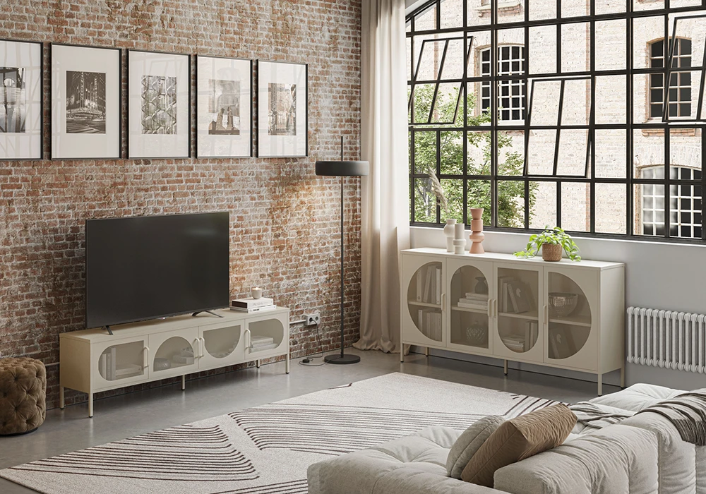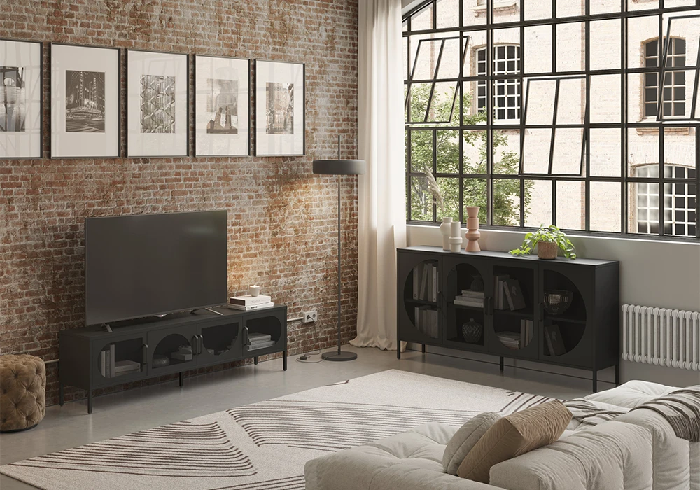 Réchauffez votre déco d’intérieur avec les meubles de la collection Tayra au look industriel et design. Installé dans votre séjour, ils génèrent une ambiance chaude et conviviale.