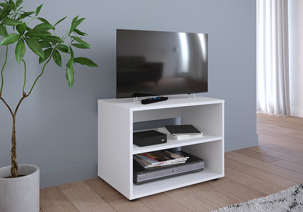 Le design simple du meuble télévision Cap s’intègre facilement avec tout style de mobilier. Sans fond ni porte, les dimensions utiles sont généreuses et l’accessibilité totale. L’aménagement intérieur permet d’y loger une box TV, un lecteur DVD et autres éléments audio-vidéo, le meuble TV peut également accueillir toutes sortes d’objets, de livres, d’éléments décoratifs…