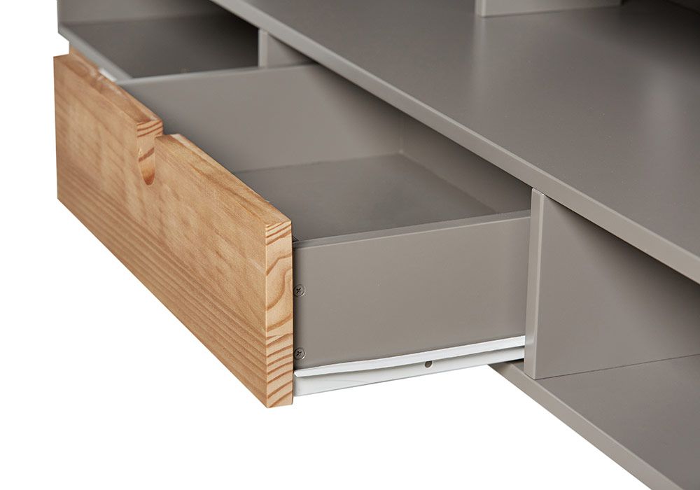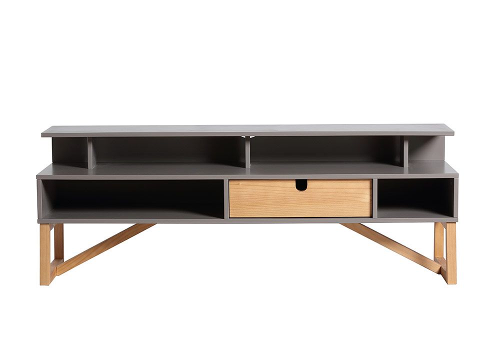 Structure en panneau de particules coloris gris ou blanc, piétement en PIN MASSIF, 139x37xH50cm.
