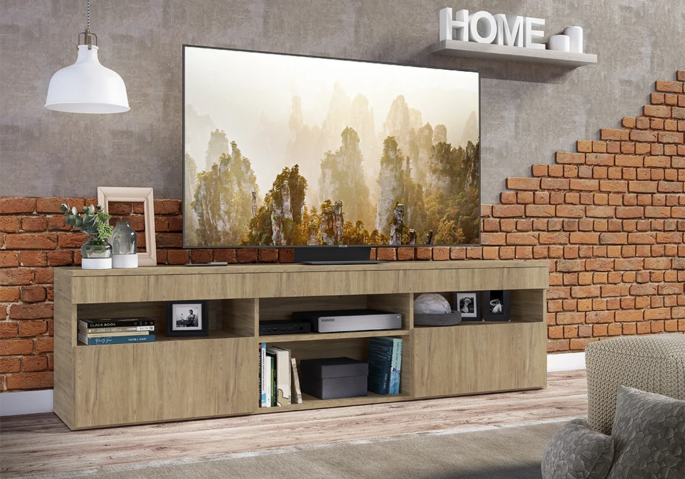 Le plateau supérieur spacieux est idéal pour installer votre télévision, tandis que les niches ouvertes permettent de disposer box, console de jeux ou lecteur multimédia en toute simplicité. Les espaces de rangement fermés avec portes offrent une solution pratique pour organiser livres, accessoires et objets déco, tout en gardant un salon ordonné.