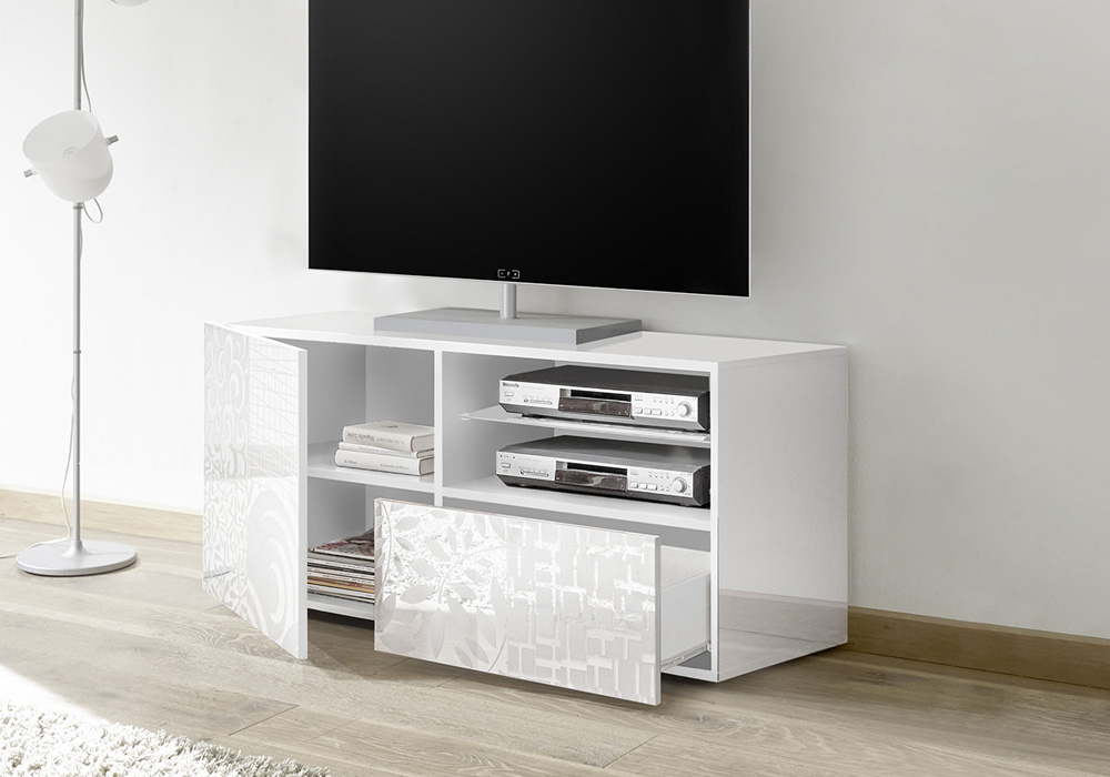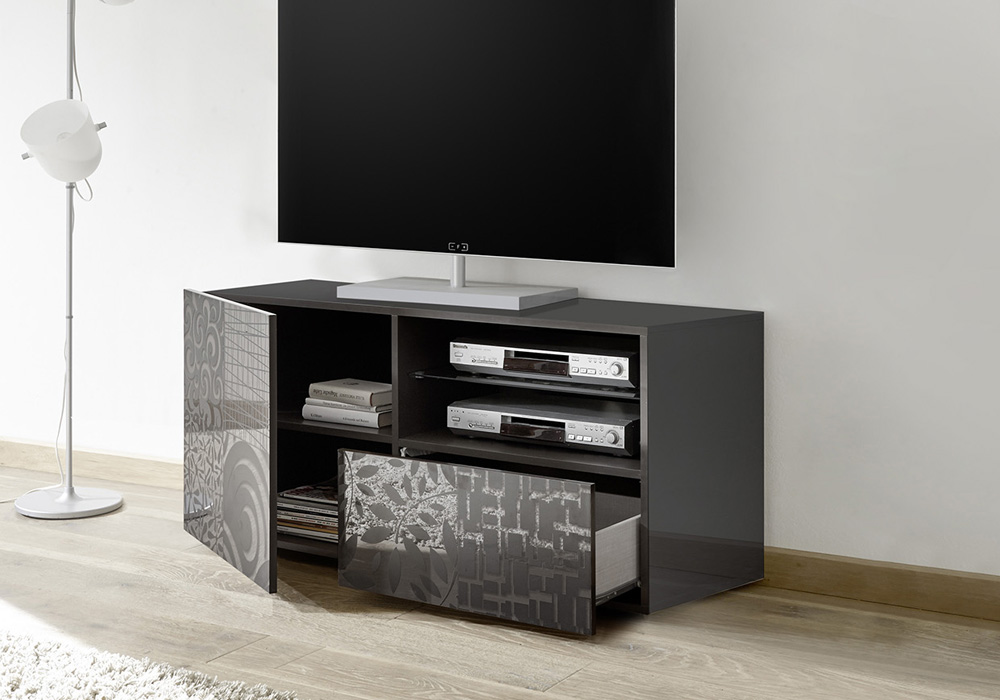 Le meuble TV Miro se compose tant bien avec style moderne, industriel ou minimaliste. Il possède 1 porte, 1 tiroir et des niches pratiquent pour ranger les magazines ou matériel hifi.