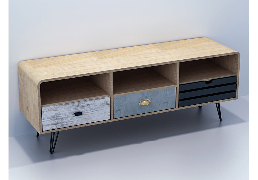 Structure en panneau de particules recouvert de papier coloris oak/blanc vieilli/gris bleu/noir, 140x40x50cm.