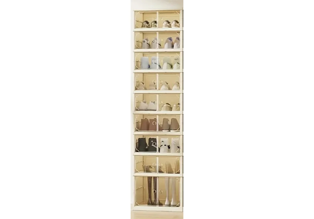 Transformez votre quotidien avec ce meuble à chaussures 9 niveaux, 18 portes, conçu pour allier esthétique moderne et praticité absolue. Sa structure pliable en plastique, dotée de portes à poignées ergonomiques, offre une solution de rangement ingénieuse et élégante.