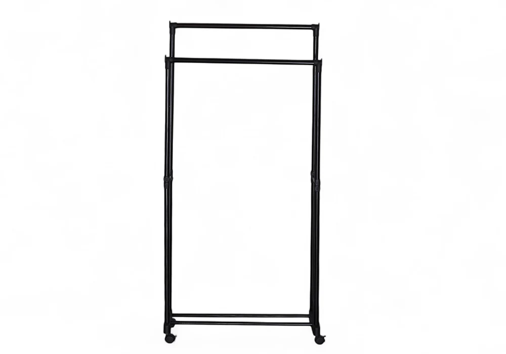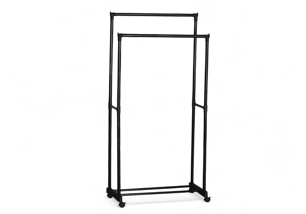 Sa structure en métal coloris noir offre une robustesse durable et une esthétique industrielle qui s’intègre facilement dans une chambre, un dressing ou une entrée. Grâce à ses deux barres de suspension, elle permet d’organiser efficacement vos vêtements, manteaux ou chemises, tout en conservant une présentation ordonnée et accessible.