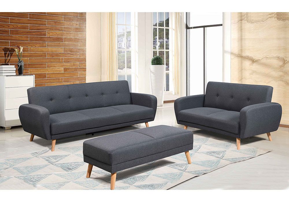 Ce salon 3+2 convertible en tissu de couleur gris foncé et aux dimensions généreuses allient charme et fonction pratique. Le design de ce canapé va révéler votre espace sous un autre jour. Un look épuré qui correspond parfaitement à la tendance actuelle.
